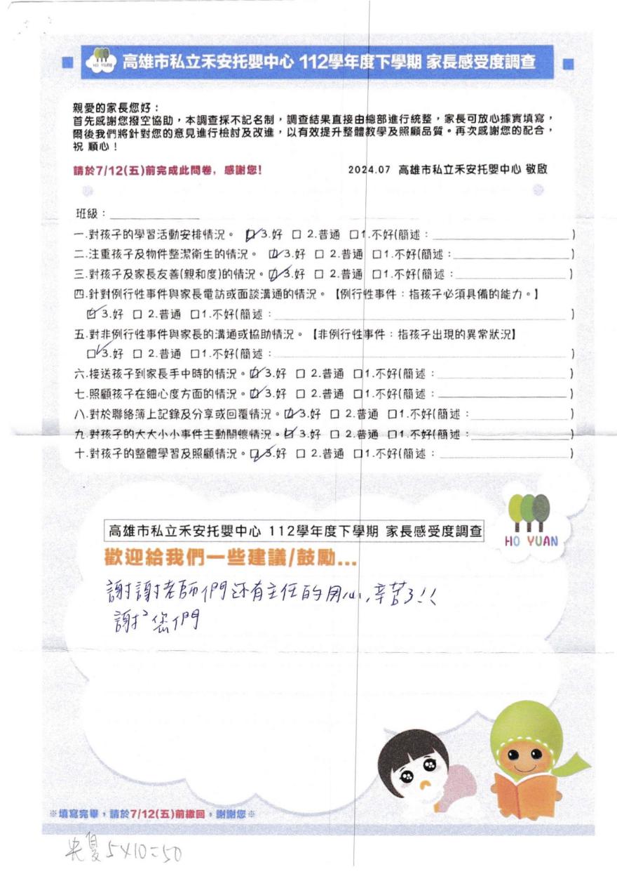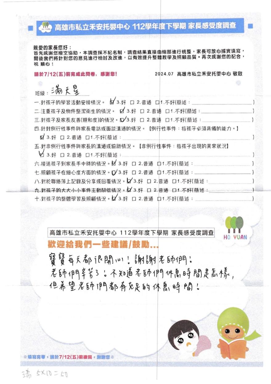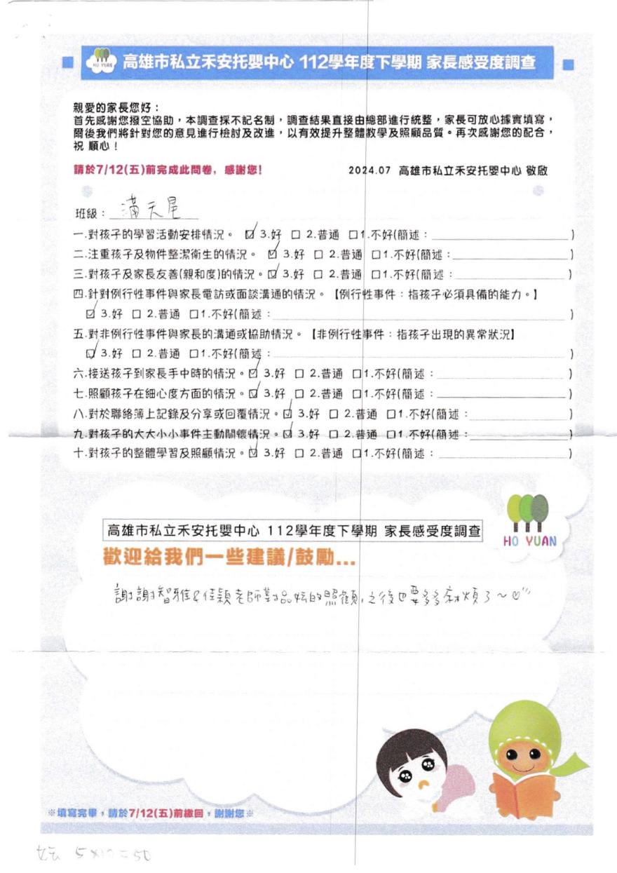 2023家長好評-高雄市私立禾安托嬰中心
