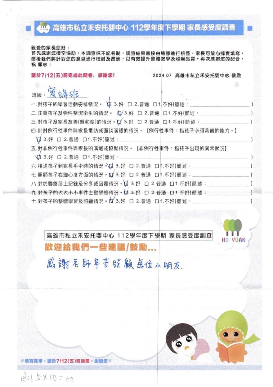 2023家長好評-高雄市私立友愛幼兒園