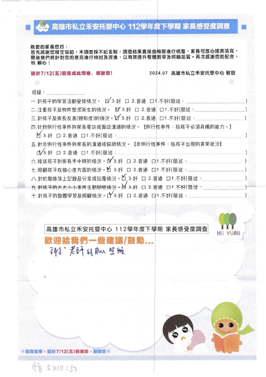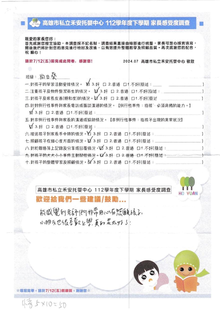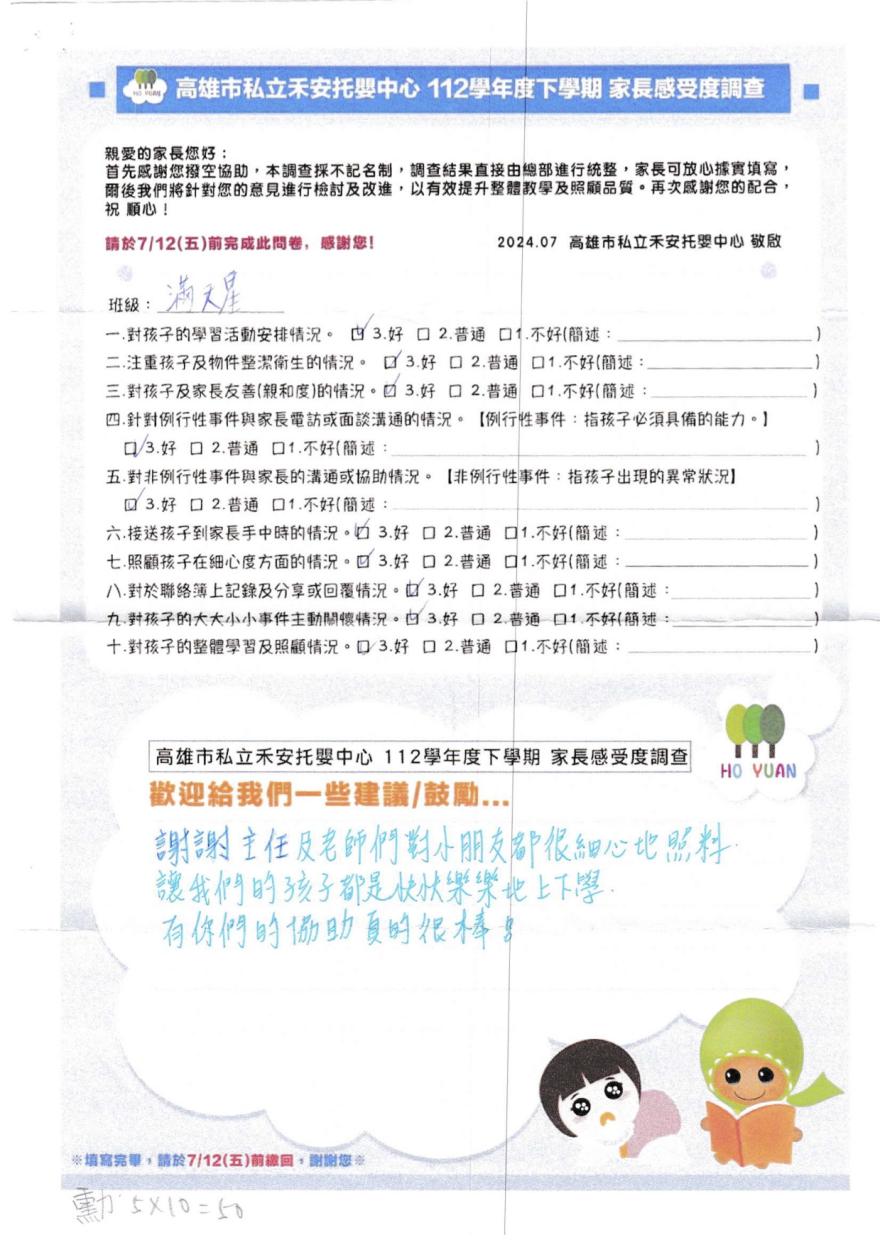 2022家長好評-高雄市私立禾園托嬰中心